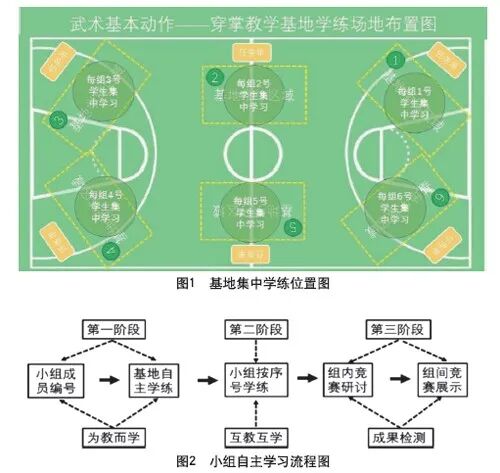 按照“武术基本动作——穿掌”小组练习内容依次排序,每名学生都承担“要教会别人”学习任务,从小组练习内容中认领一项学习内容。比如:小组2人承担一项动作学习内容,各组相同练习内容的同学集中到“学习基地”学习,根据任务内容进行自主学习活动。如1号为“马步劈掌”、2号为“弓步按掌”、3号为“提膝穿掌”、4号为“马步劈掌”、5号为“弓步按掌”、6号为“提膝穿掌”,然后1、2、3组的2名1号任务同学去1号位自主学习“马步劈掌”,2名2号任务同学去学习“弓步按掌”……4、5、6组的2名4号任务同学去4号位自主学习“马步劈掌”,2名5號任务同学去学习“弓步按掌”……