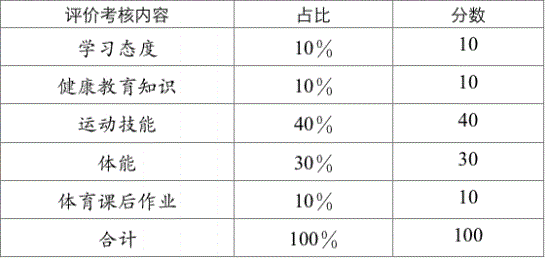 ①学习态度:根据体育与健康课出勤率及课堂实际表现如实记录并评定成绩。