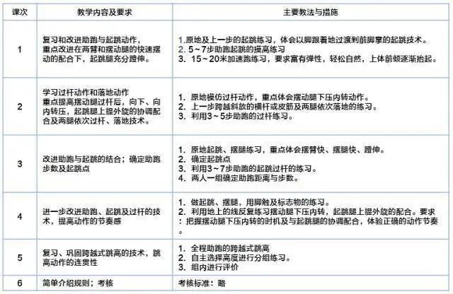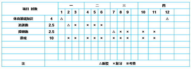 单元计划应体现出运动技术教学的系统性和递进性,同时单元教学计划也是反映教师对一个教学内容的整体构思和设计,因此,它是体育教师编写课时计划的直接依据 。