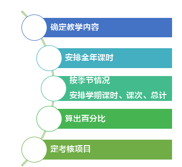 (1)根据学期教学计划的目标,确定各项主要教材的总目标和总要求;再根据该项教材的难易程度和教学时数,制定出每次课的具体目标和要求 ;