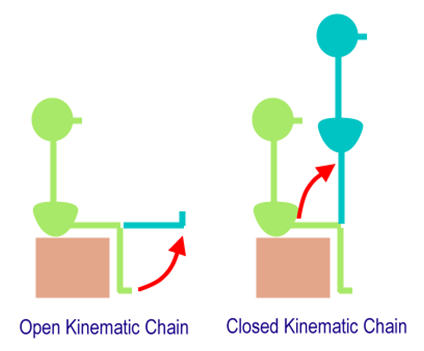 开链运动(OKC)是指肢体远端不固定且不承受身体重量所进行的运动(远端肢体在固定的近端肢体基础上移动)。而闭链运动(CKC)则为肢体远端固定并承受身体重量所进行的运动(近端肢体在固定的远端肢体基础上移动)。前者使得原动肌和协同肌兴奋,但拮抗肌不同时收缩;而后者则使原动肌、协同肌和拮抗肌同时兴奋,具体区别如下图: