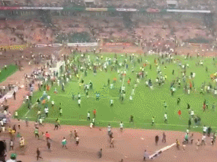 尼日利亚主场被加纳淘汰后,暴怒的球迷涌入球场,追打群殴球员,砸毁球场设施,加纳球员都顾不上庆祝仓皇而逃,场面一度十分混乱,警察最终不得不动用催泪瓦斯以控制现场情况。