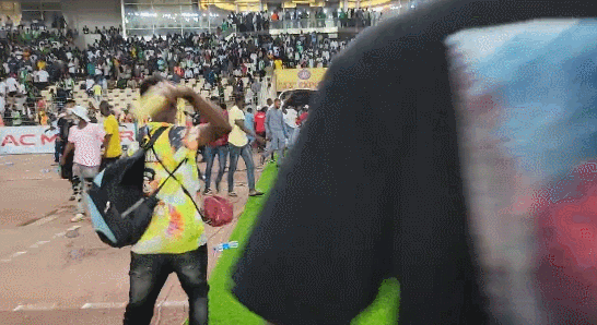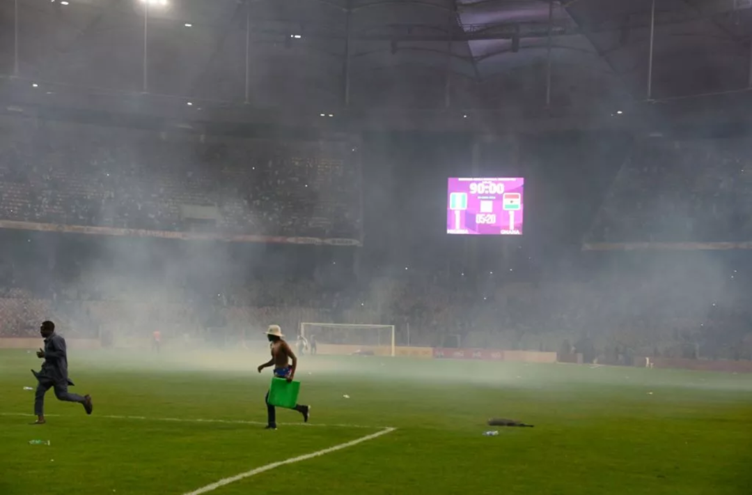 加纳球员逃离现场后,尼日利亚警方动用催泪瓦斯驱赶闹事球迷,才终于控制住骚乱情况。