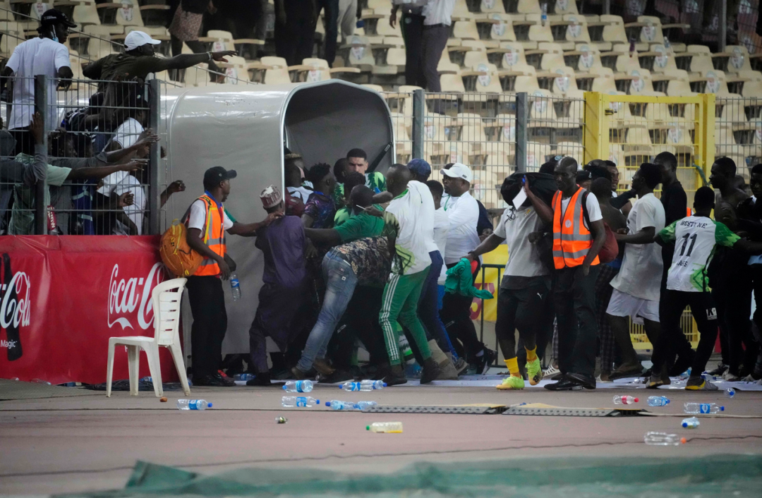 据《镜报》等媒体报道,尼日利亚的出局激怒了现场数万名球迷。终场哨声一响起,大批现场球迷观众翻过看台,冲进阿布贾国家体育场场内,追打群殴球员,大肆破坏球场设施泄愤,还与警察、球场安保人员发生激烈冲突。