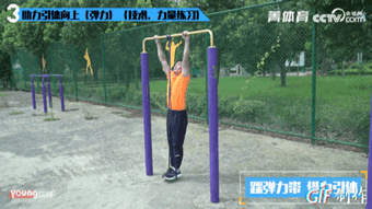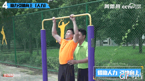 扶墙压肩,每组4×8拍 跳起引体,每组5-8次 助力引体向上(弹力),每组3-5次 助力引体向上(人力),每组5次 引体向上,每组1-3次 |