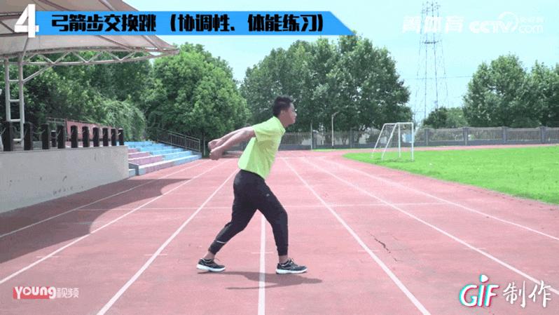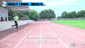 原地提踵,每组30秒 绳梯练习,每组30秒 原地后踢腿,每组4×8拍 弓箭步交换跳,每组4×8拍 上、下楼梯,每组2层楼 跳绳,每组1分钟 |