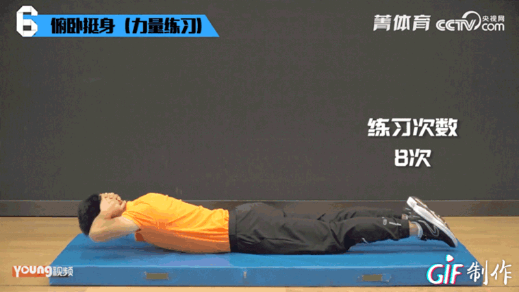 俯卧平板支撑,每组60秒 两头起静力保持(V字支撑),每组20秒 仰卧举腿,每组20次 波比跳,每组20次 |