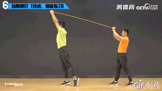 肩带拉伸,每组4×8拍 椅背压肩,每组4×8拍 蹬地挥臂,每组10次 蹬地鞭打,每组10次 弓步鞭打,每组10次 抗阻鞭打,每组10次 抗阻举臂,每组10次 体育教师网公众号 |