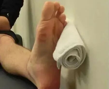 外翻力量训练,脚外侧使用较小的力量轻推毛巾。