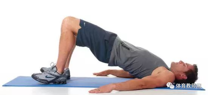 背部平躺于地,膝盖弯曲,手臂打开,手掌向下。以腹部为轴,提起臀部,双脚用力蹬地。使核心、臀部和大腿呈直线,在这个位置保持3-5秒。做3组,每组做10次。