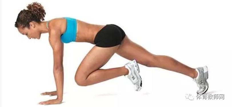 以俯卧撑姿势开始。将右膝向内收起,然后再伸出。将左膝向内收起,然后再伸出。双腿交替,在保持良好登山姿势的同时尽可能快速地移动。做3组,每组做10次,左右一起算1次(即左1步右1步计做1次)。