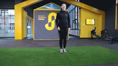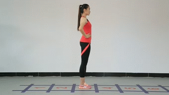 2.每次起跳都用前脚掌发力,吸气准备向上跳,同时自然摆动手臂。