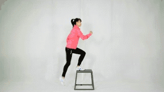 3.放在凳子下面的脚尖蹬地发力向上蹬起,放在凳上的腿蹬至直立,放在凳下的腿向上成90度角为完成一次练习。