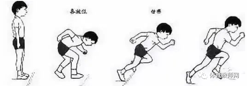 3.听到老师发出起跑口令,学生需两脚用力蹬地,迅速前冲出去,起跑后注意不要突然抬头或提高重心。