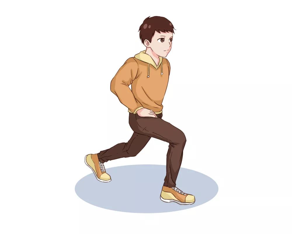 (1)先从一个标准的弓箭步开始,一脚在前,一脚在后,双膝弯曲。前腿膝盖不要超过脚尖,后腿膝盖接近地面。
