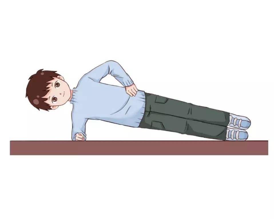 右侧为例,右臂前臂和右脚外侧着地,身体成直线,左手叉腰,核心收紧。