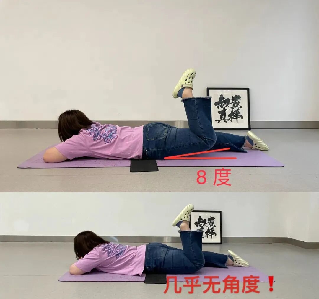 看看腿抬起的角度,上班前能提到 8 度,下班几乎就抬不起来了。