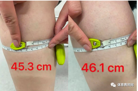 上班前测量是 45.3 厘米,画一条线做标记,下班时是 46.1 厘米。