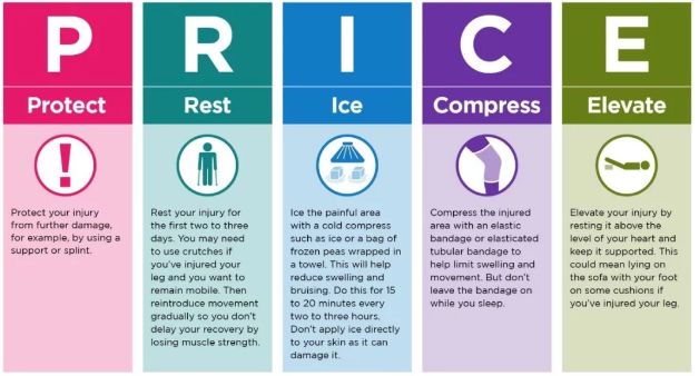 “PRICE原则”是目前专业人员广泛认可的急性损伤操作处理原则,最佳处理时间是在24到48小时内,处理的原则有五个步骤: