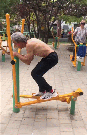看大爷这灵活的步伐,我感觉我跑不过他了