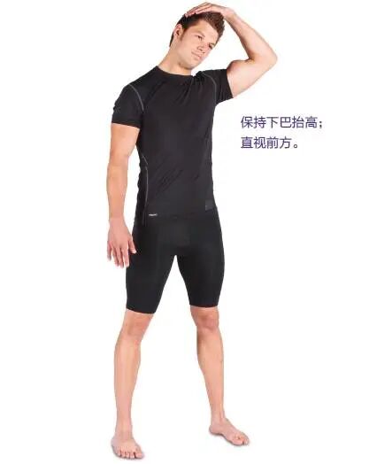 【1】站直或者坐直。将一只耳朵向肩膀靠近。从头的另一侧轻轻往下拉。