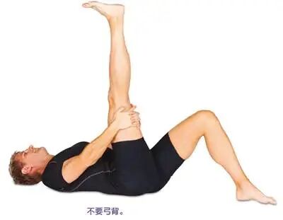【1】面部朝上躺在地板上,双腿略弯。抬起一条腿,然后使膝盖挺直。将手(或者皮带)环住大腿,并移动腿部慢慢靠近头部。