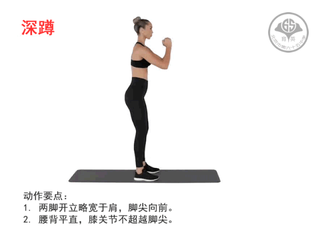 4.深蹲(12~15次*2~3组,吸气下蹲,呼气还原)