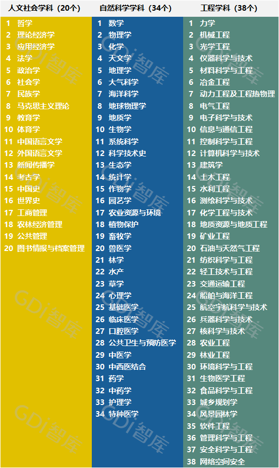 “GDI大学一流学科排行榜(2022)”科学评价92个学科(包括新增的特种医学和网络空间安全两个学科),其中人文社会学科20个,自然科学学科34个,工程学科38个,评价对象为上述学科设有硕士点的全国院校(不含香港特别行政区、澳门特别行政区和台湾地区高校,未涉及军事类院校)。