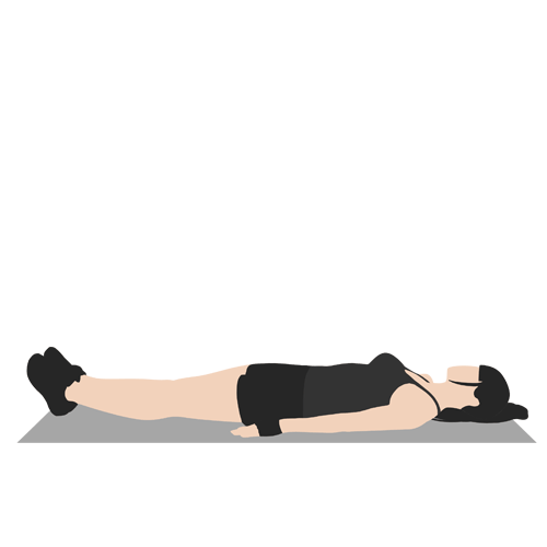 1 仰卧平躺于地面,背部紧贴地面,双手放在身体两侧;