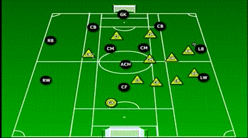 2、缺点:中场的责任非常重,他必须拿得住球,让其他进攻端的队友从边路位置参与到进攻当中。