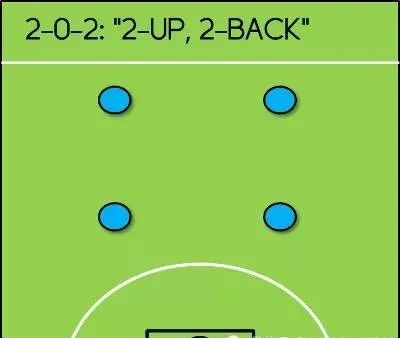 2-0-2阵型,通常我们称其为“方盒阵型”,实质上就是将队伍中的四人分到两个简单的责任区域:防守和进攻。简单、明确,且能发展出好的攻防搭配。
