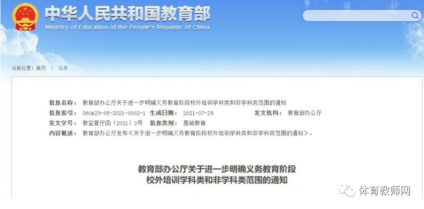 接着,教育部办公厅发布《关于进一步明确义务教育阶段校外培训学科类和非学科类范围的通知》,让体育培训机构松了一口气。