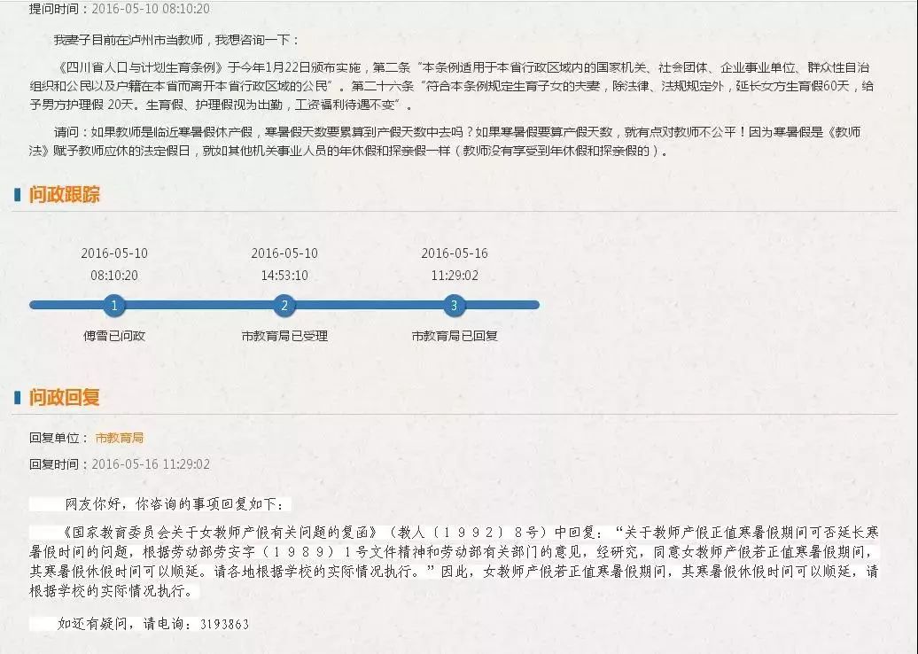 很多地方在官方回复中,也提及了上文《国家教育委员会关于女教师产假有关问题的复函》(教人〔1992〕8号)中的回复。
