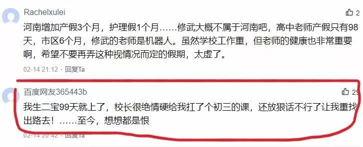 对此,网友们也表示了赞同和支持,真的特别暖心。但是呢,在个别的一些学校,校领导对于请产假的女老师,对待方式还是有所区别的,比如下图中的这位女老师,就觉得很委屈: