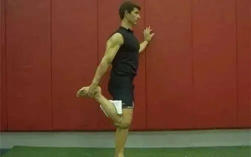 动作要领:取站立位,左侧手握住左侧脚,将左侧脚轻轻拉向臀部,保持10~20s。换方向。