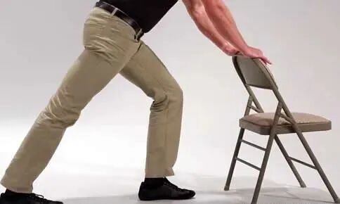 动作要领:双手扶墙,一腿在后、一腿在前站立,双腿同时屈膝,拉伸后侧小腿,直到小腿后部有明显的拉伸感。保持30s,换方向,重复3次。