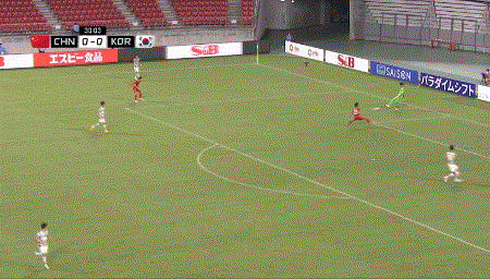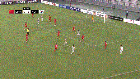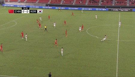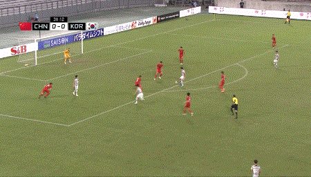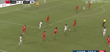 39’ 国足后防送乌龙大礼 韩国一球领先