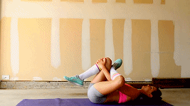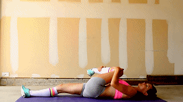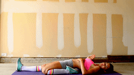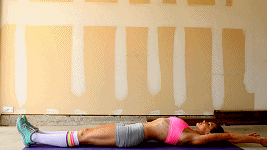 4/ 侧卧,拉起一侧脚踝直到脚跟碰到臀部,然后压住腿部平躺下来,坚持10秒。