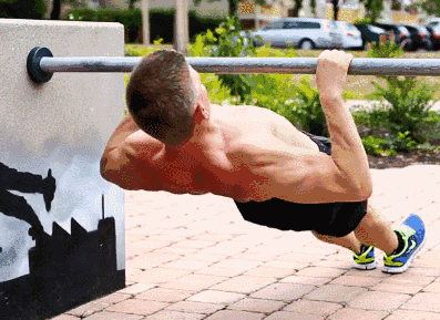 ●双腿前伸,身体保持水平直线,双手握紧住杠,随着横杠的高度不断调整,做水平引体的高度也跟着不断调整。