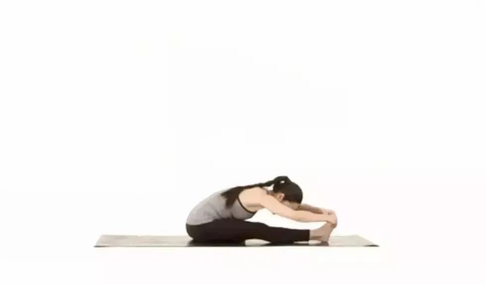 ●身体继续向前折叠,鼻子慢慢靠近小腿。