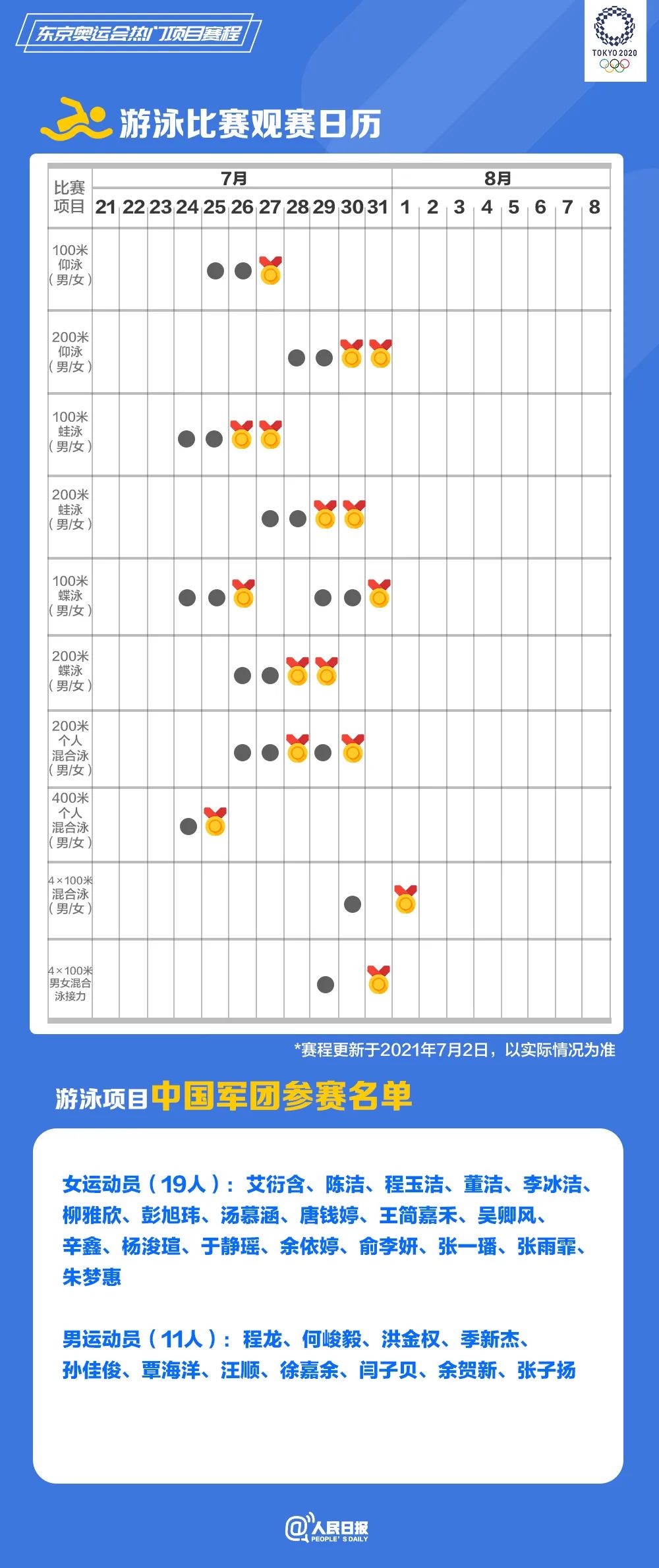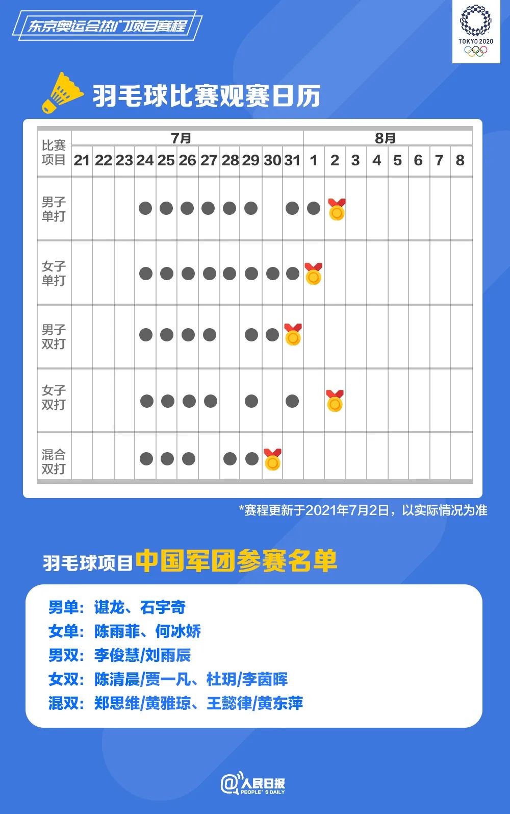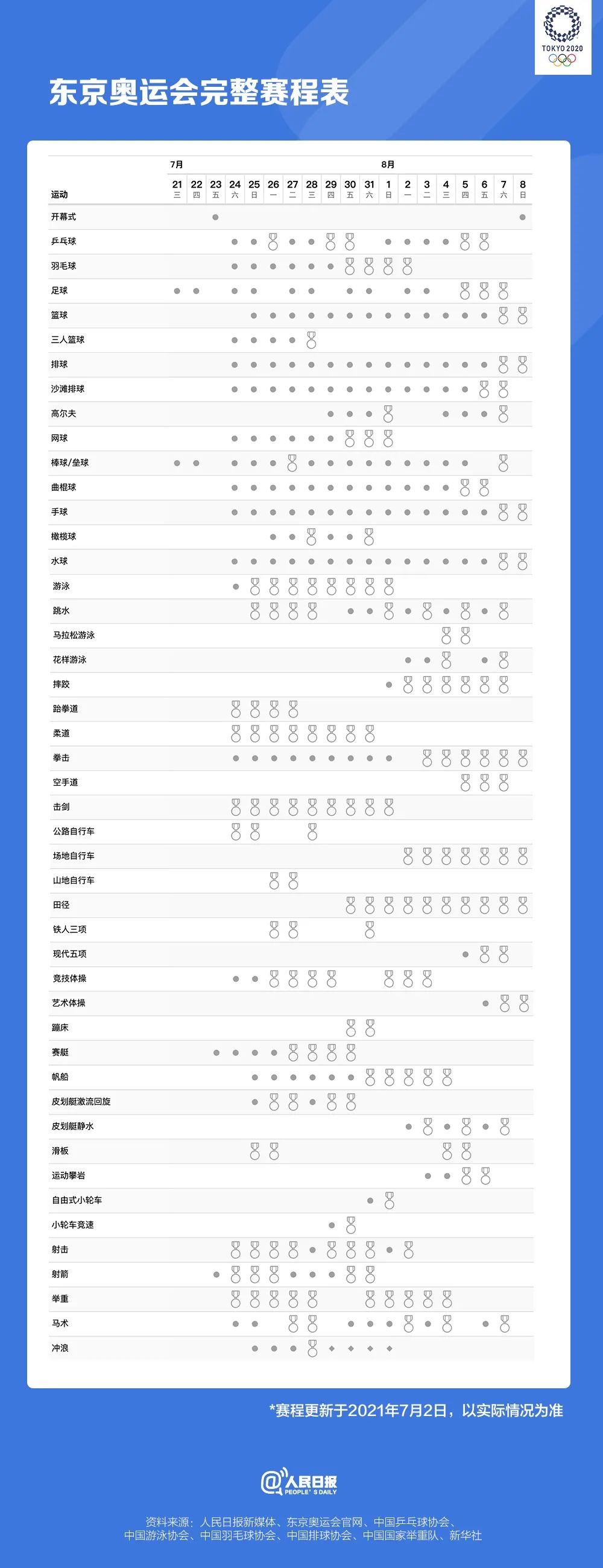 赶紧收藏!东京奥运会热门项目观赛日历来了