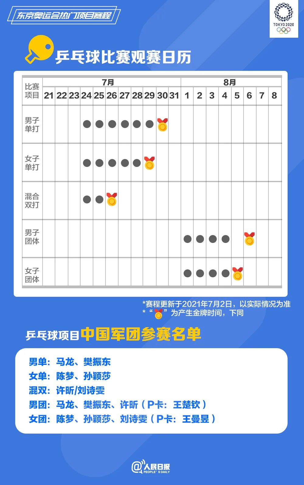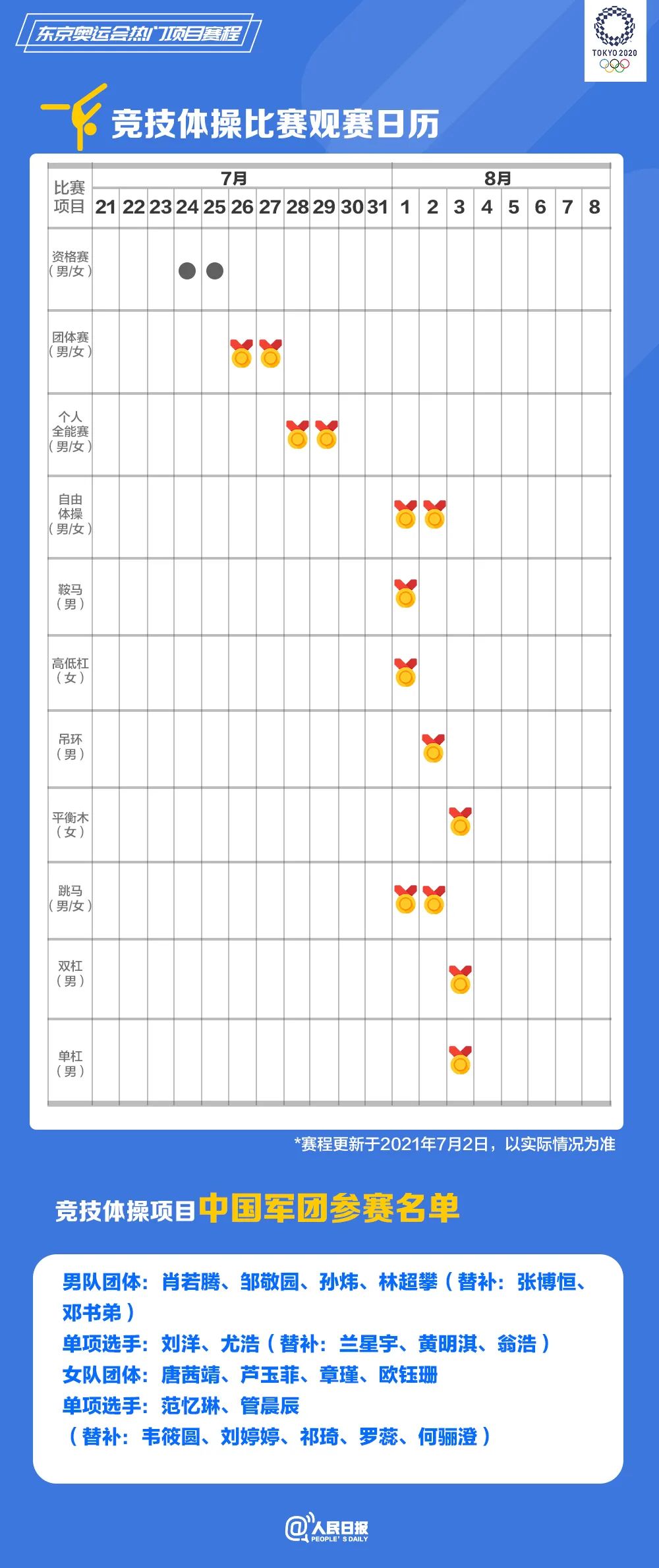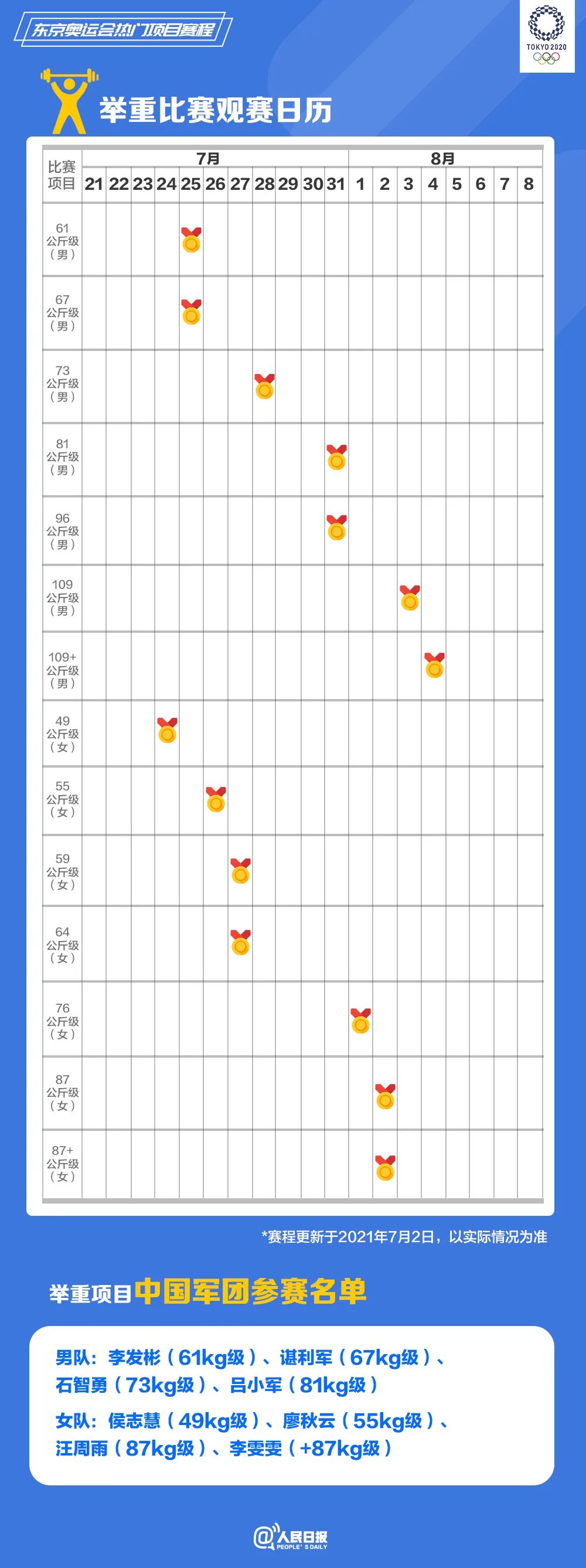 赶紧收藏!东京奥运会热门项目观赛日历来了