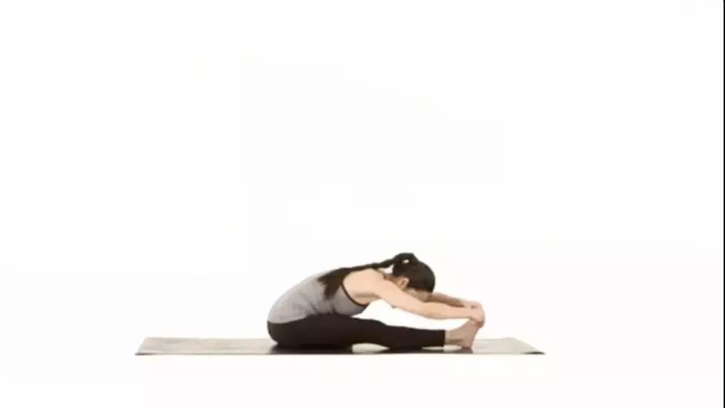 ●身体继续向前折叠,鼻子慢慢靠近小腿。
