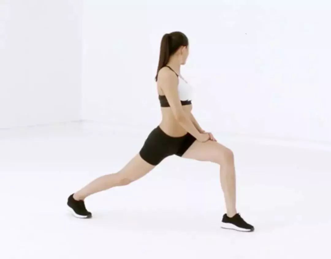 ●大腿后侧有拉伸感,保持1秒,下蹲,继续循环。