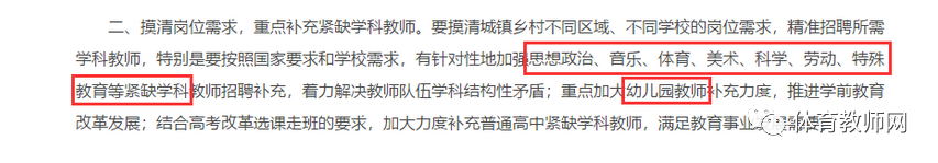 特别是要按照国家要求和学校需求,有针对性地加强思想政治、音乐、美术、科学、劳动、特殊教育等紧缺学科。