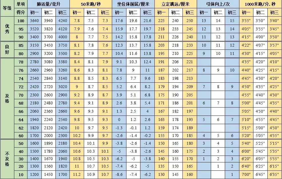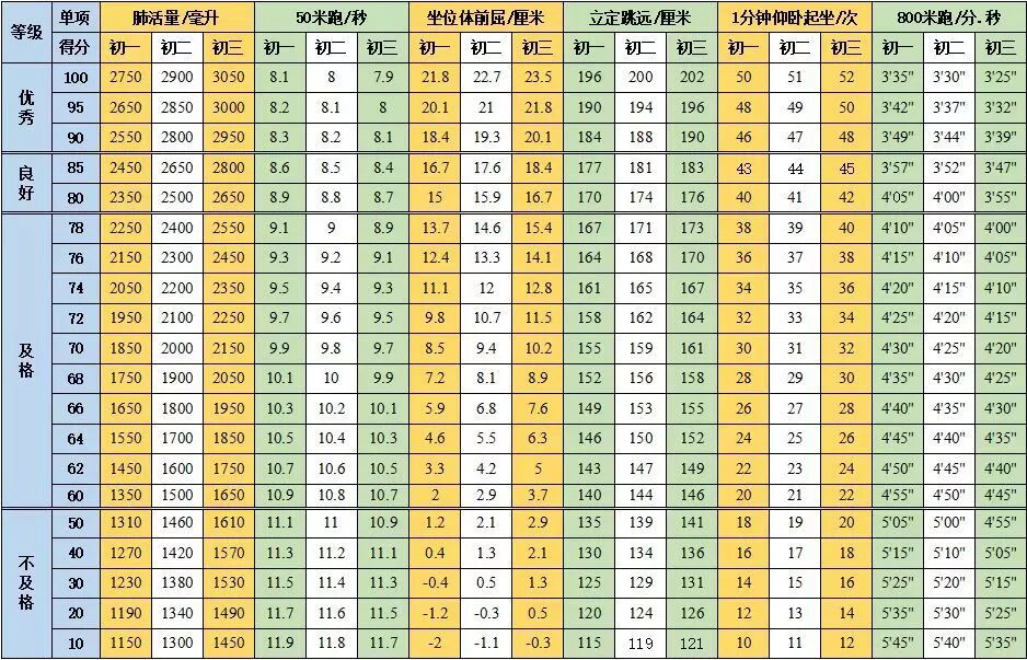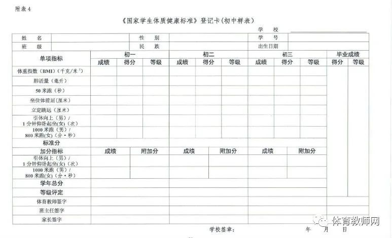 跟体育教师网一起来看看初中生的体质健康测试项目和标准吧!