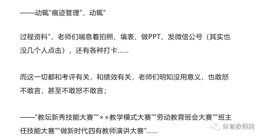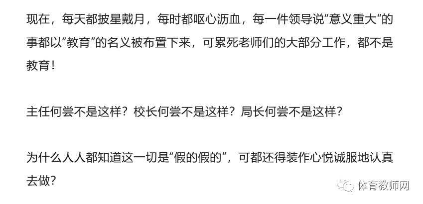 为了这些复杂、喧嚣、华丽、虚假和恶心,老师们毫无意义地耗费的热情与青春,汗水与泪水,最后,心灵渐渐麻木,对教育渐渐厌倦!