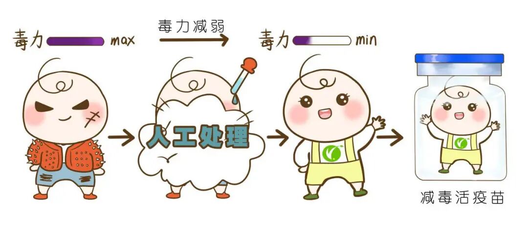 如果我的身体经人工处理,毒力降低到可以刺激人体产生免疫力,但又不会产生疾病,这样的我被制成疫苗,就叫作减毒活疫苗。