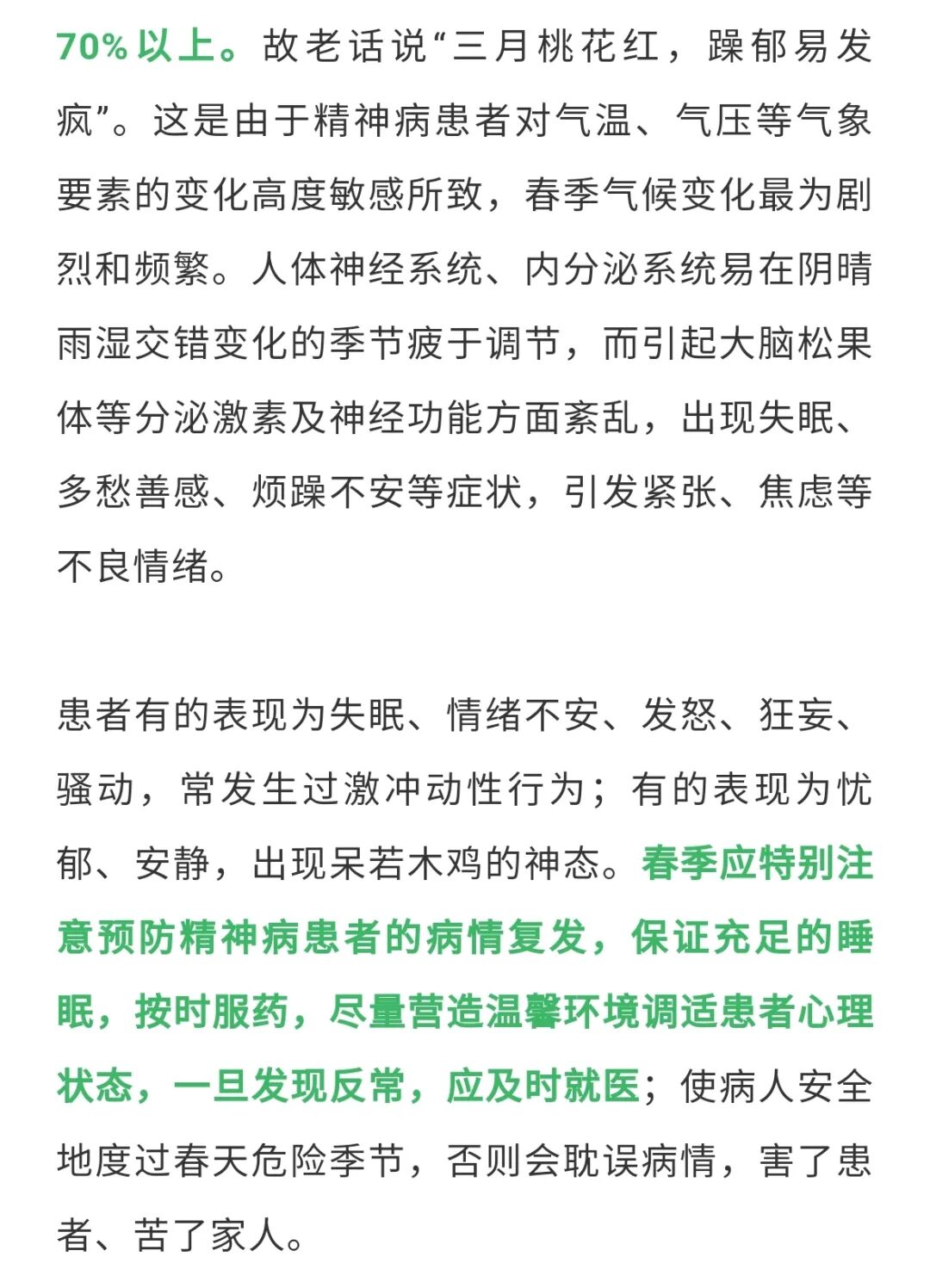 对于有心理危机的人,如果发现“突然沉默寡言”,要引起重视,因为精神病患者初期往往首先表现出与过去较大反差的沉默寡言,进而出现其他症状。家人可以采取一起出去踏青、多与自然接触、多和家人朋友交流沟通、帮助调整情绪、保证充足的睡眠等措施来有效地化解不良情绪,预防精神病的发生。