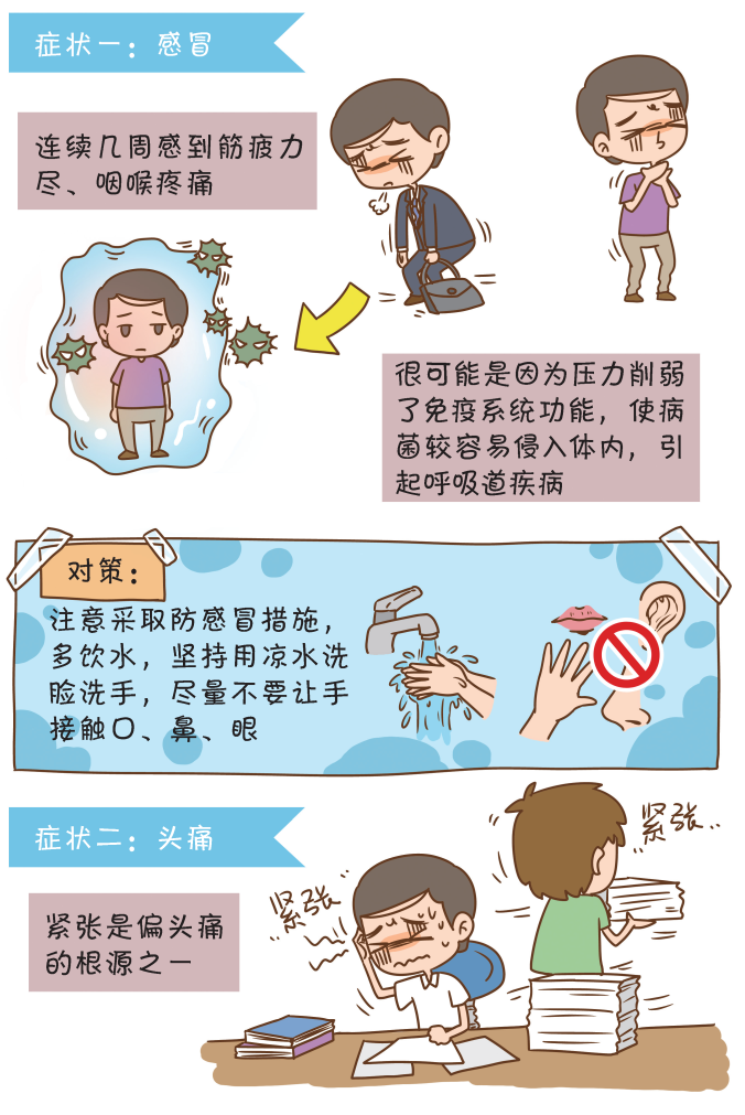 考生为了考试,步入社会的年轻人为了提职加薪,当承受的压力越来越大,身体就可能出现相应的症状。今天,就为您梳理一下压力过高的4大症状以及相应的对策。